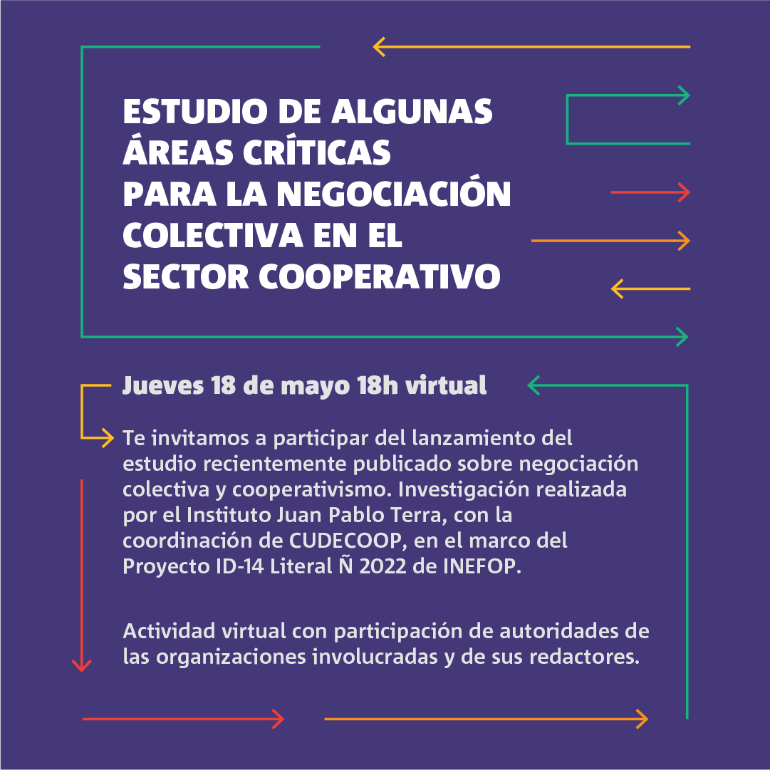Te invitamos a participar del lanzamiento del estudio recientemente publicado sobre negociación colectiva y cooperativismo. Investigación realizada por el Instituto Juan Pablo Terra, con la coordinación de CUDECOOP, en el marco del Proyecto ID-14 Literal Ñ 2022 de INEFOP.